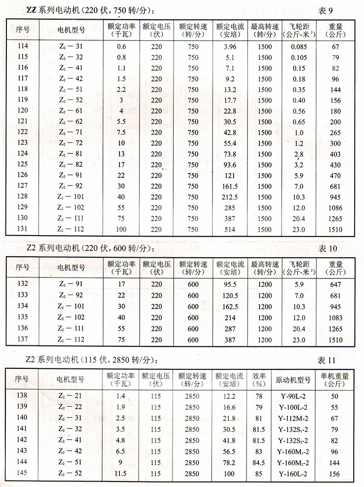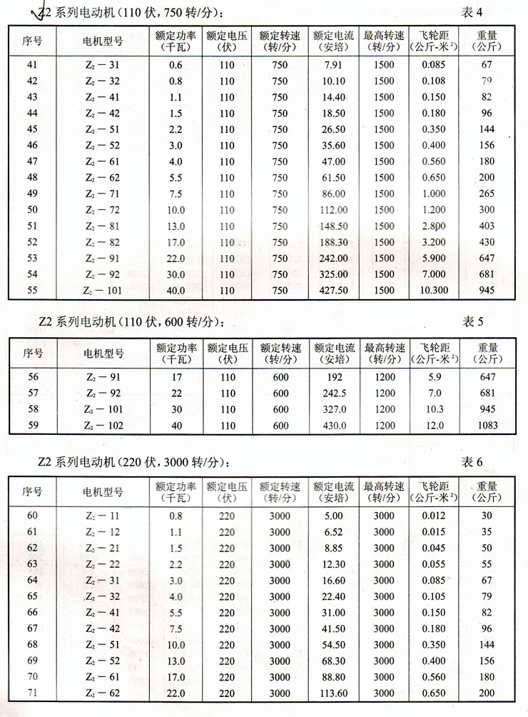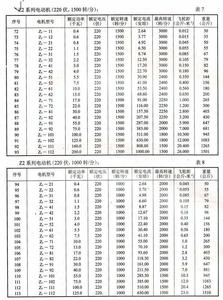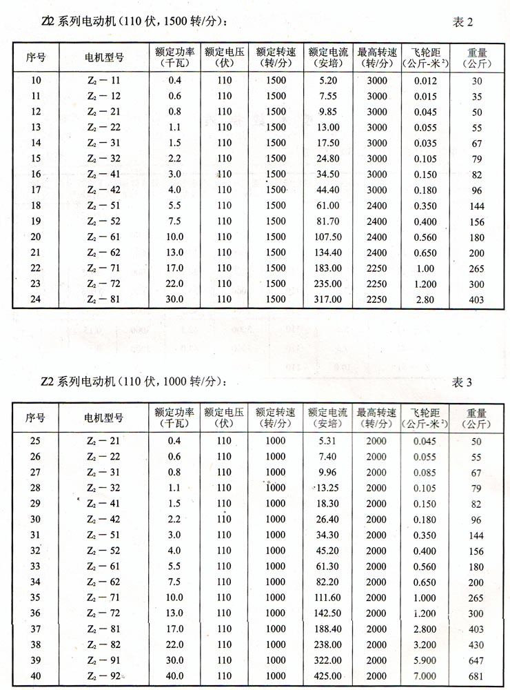 Z2系列電動機(220伏,1500轉(zhuǎn)/分)